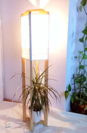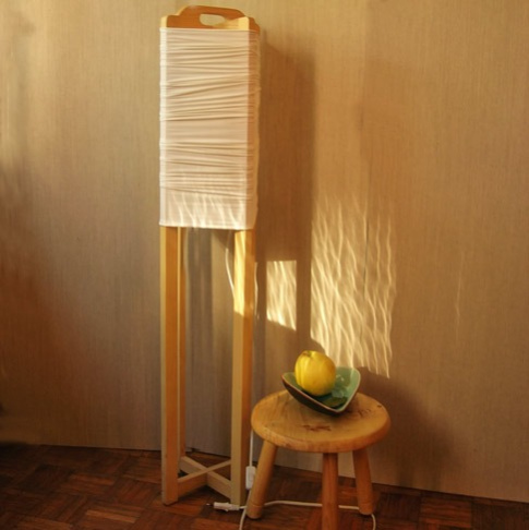 Ova podna lampa može menjati svoj izgled i količinu svetlosti rastezanjem ili skupljanjem abažura. Lako se pomera ali može da se okačiti o dršku na vrhu lampe.